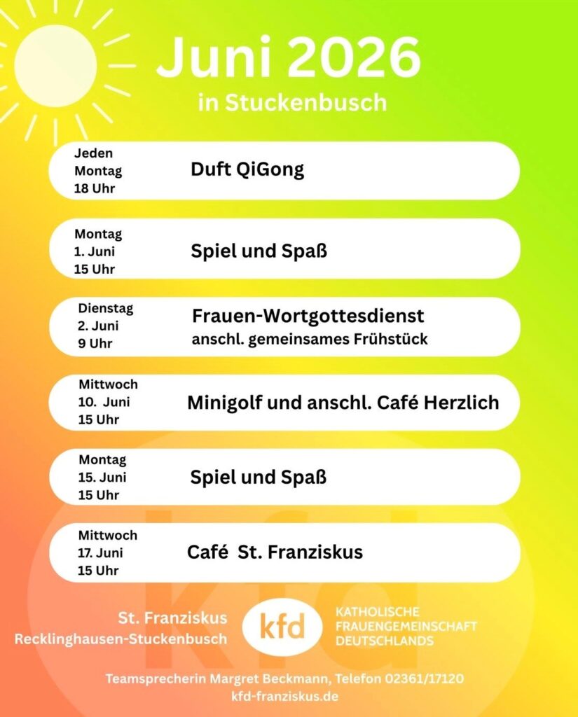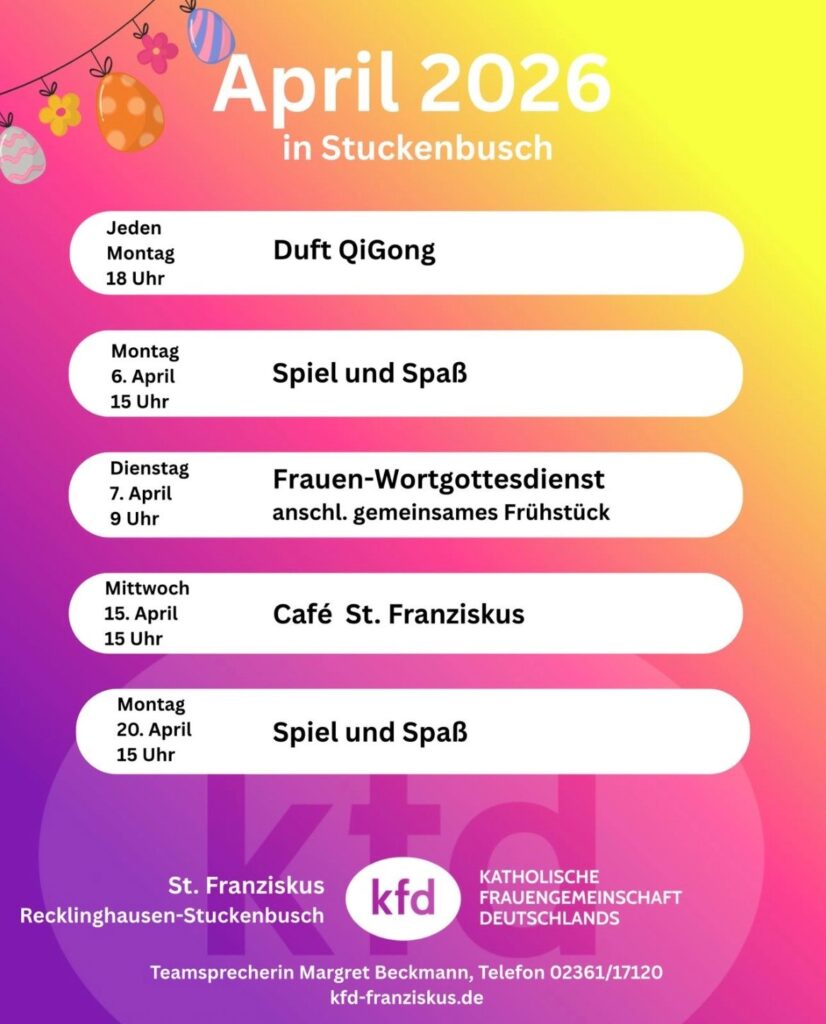 Dienstag 05.05. entfällt der Frauenwortgottesdienst um 9.00 Uhr